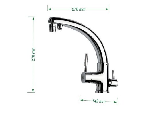 Μοντέρνος μείκτης κουζίνας χρωμέ, εξαιρετικής ποιότητας, ιδανικός για νεόκτιστες κατοικίες ή ανακαινίσεις. Διαθέτει ξεχωριστή παροχή από το δίκτυο ύδρευσης με ανάμειξη ζεστό κρύο και άλλη παροχή με διακόπτη από το φίλτρο ή την αντίστροφη όσμωση στην ίδια μπαταρία.